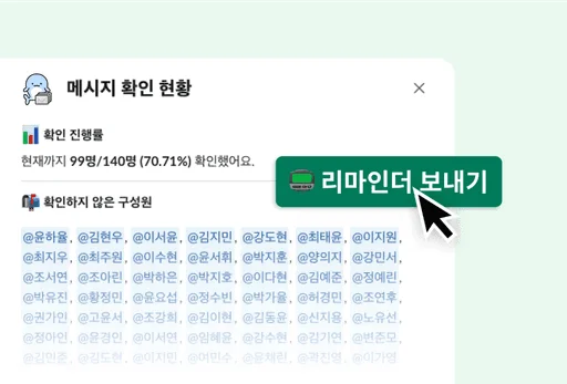 DM 공지를 활용하면 누가 공지를 확인했는지, 누가 아직 확인하지 않았는지를 실시간으로 파악할 수 있어요. 리마인더 기능을 통해 공지를 놓친 구성원에게 간단히 알림을 보내 확인율을 더 높일 수도 있죠.