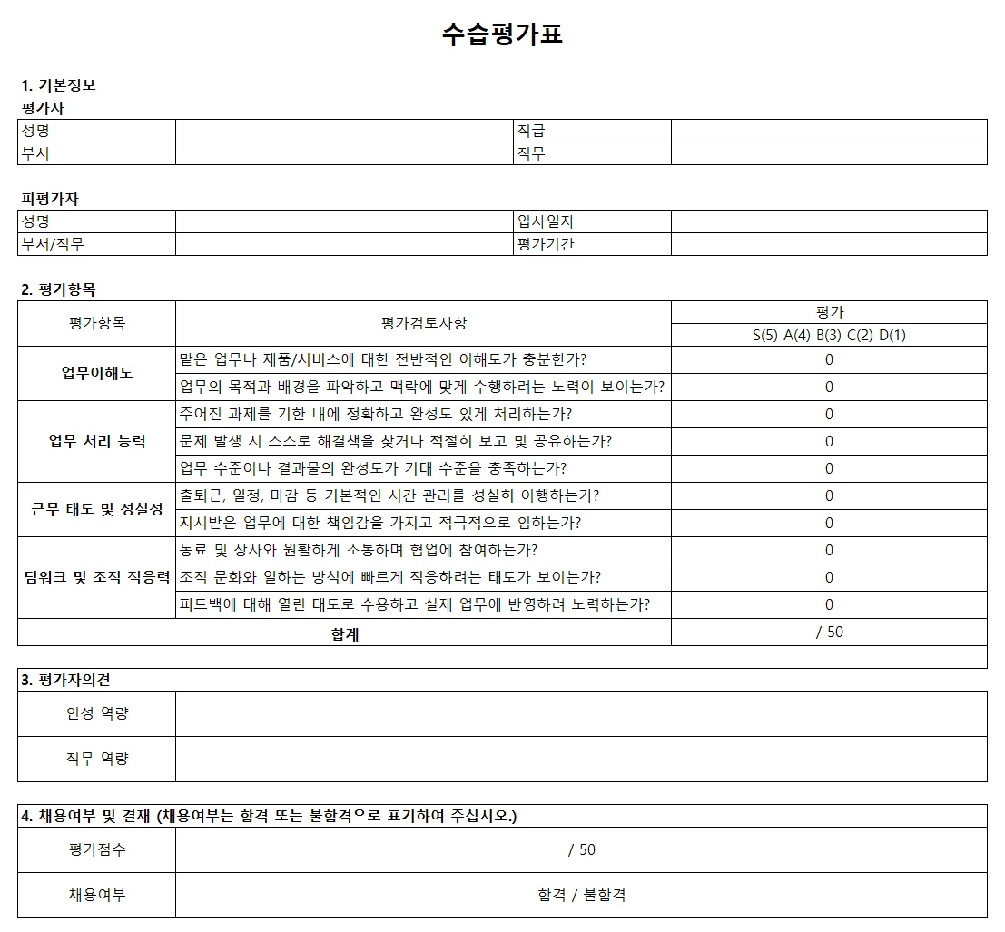 수습평가표 작성하기