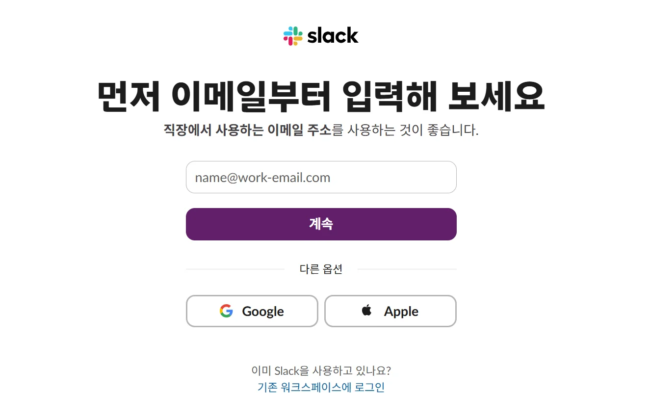 워크스페이스부터 새롭게 만들고 싶다면 링크로 접속하여 슬랙 계정을 만들 수 있어요.