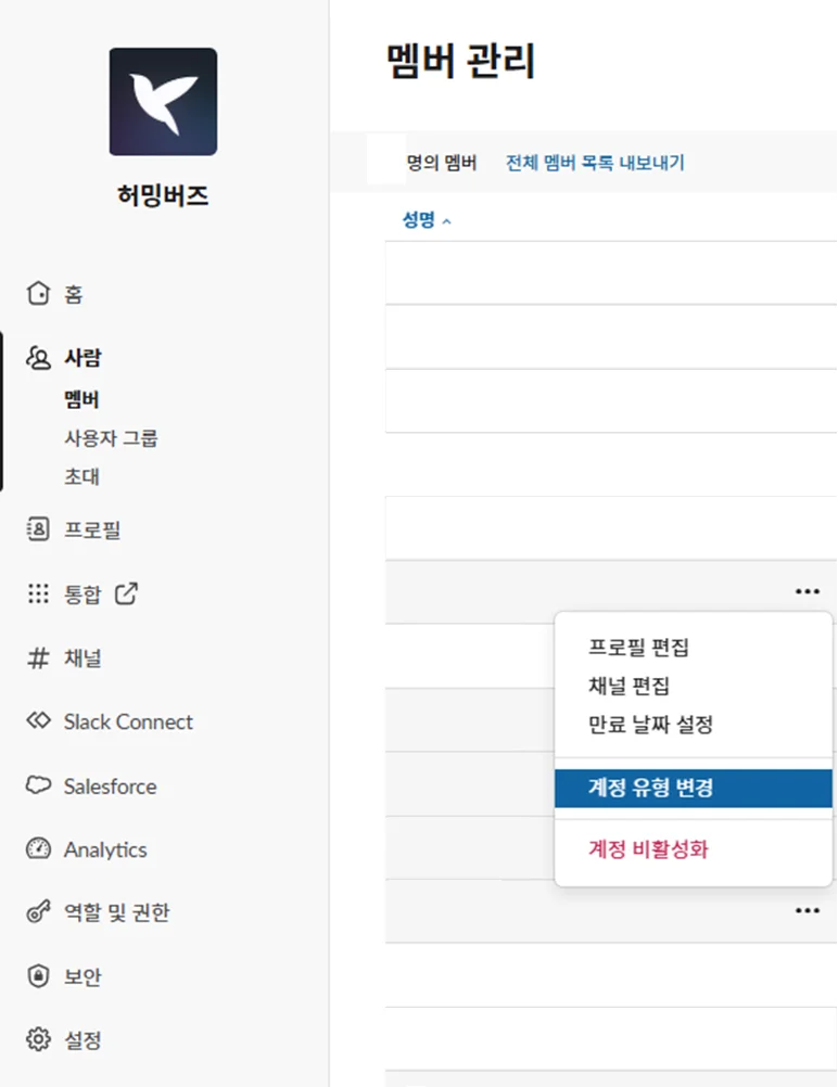 4. 슬랙 정식 멤버를 게스트로 변경하기