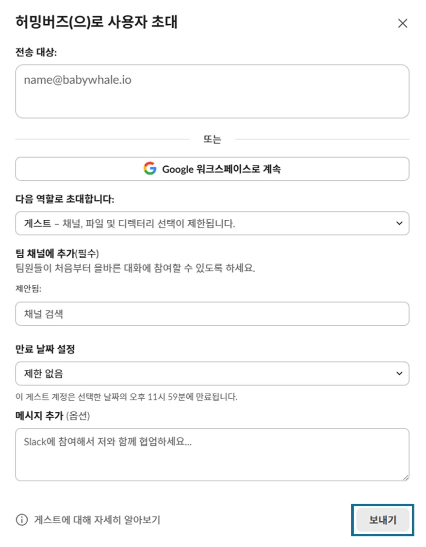 3. 슬랙 게스트 초대하기