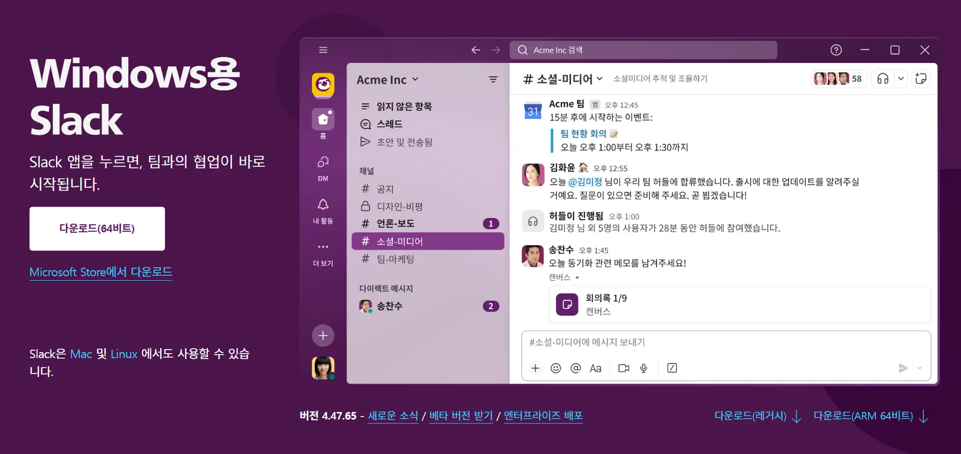슬랙 Windows(윈도우) 다운로드