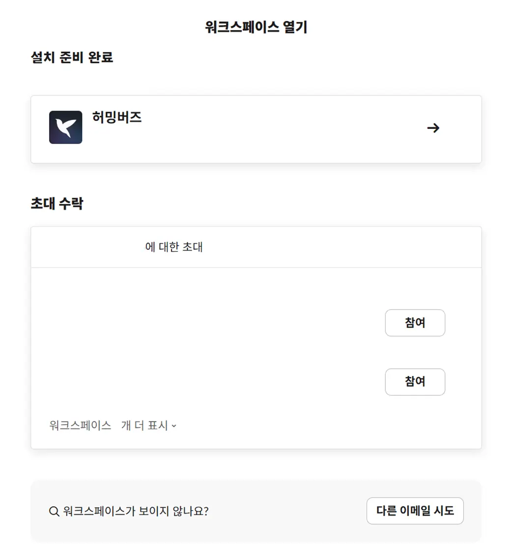 이때, 초대받은 워크스페이스가 있다면 하단의