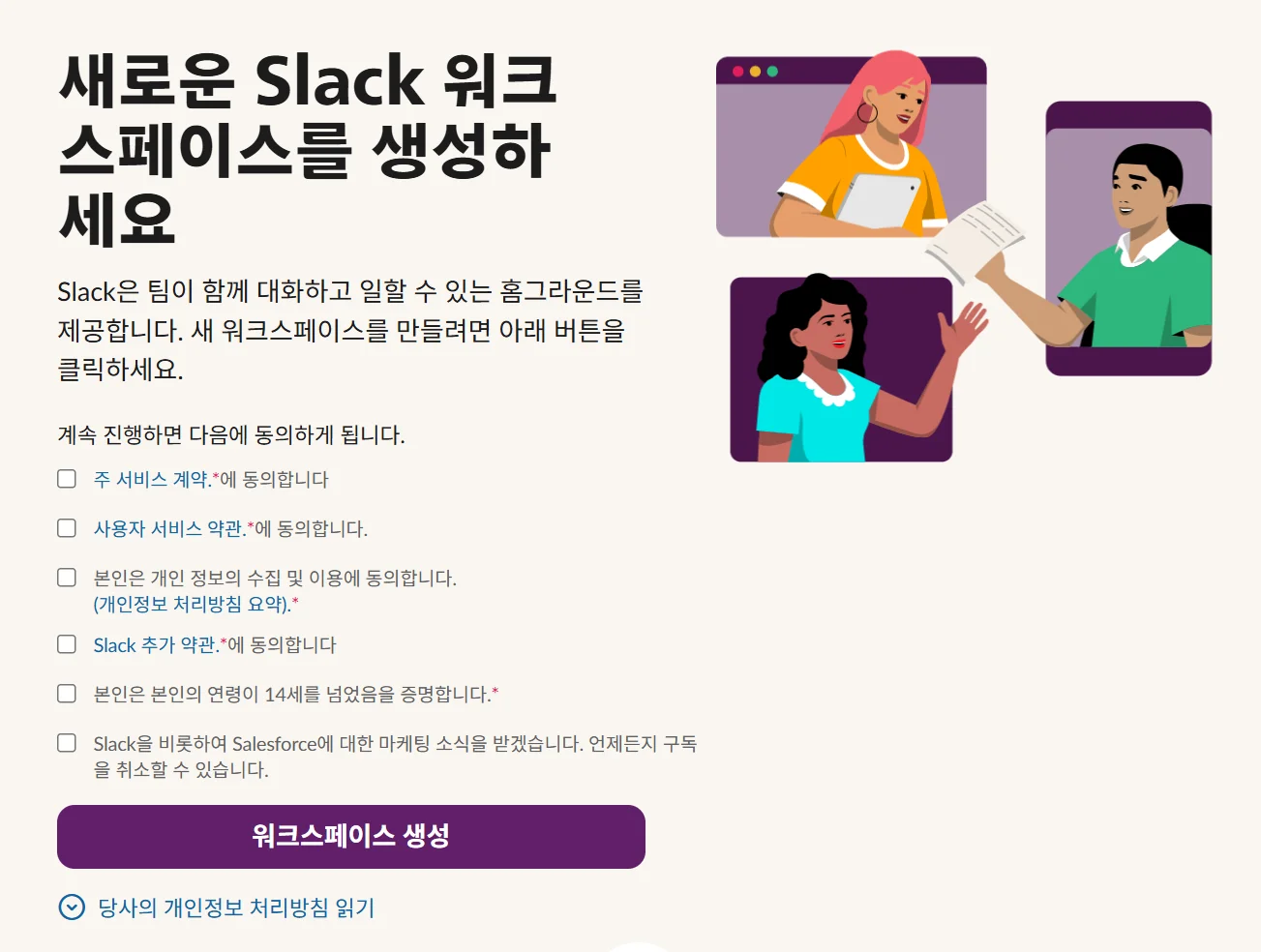 슬랙을 시작하기 위해서는 새로운 워크스페이스를 생성하거나, 기존의 워크스페이스에 참여해야 해요.