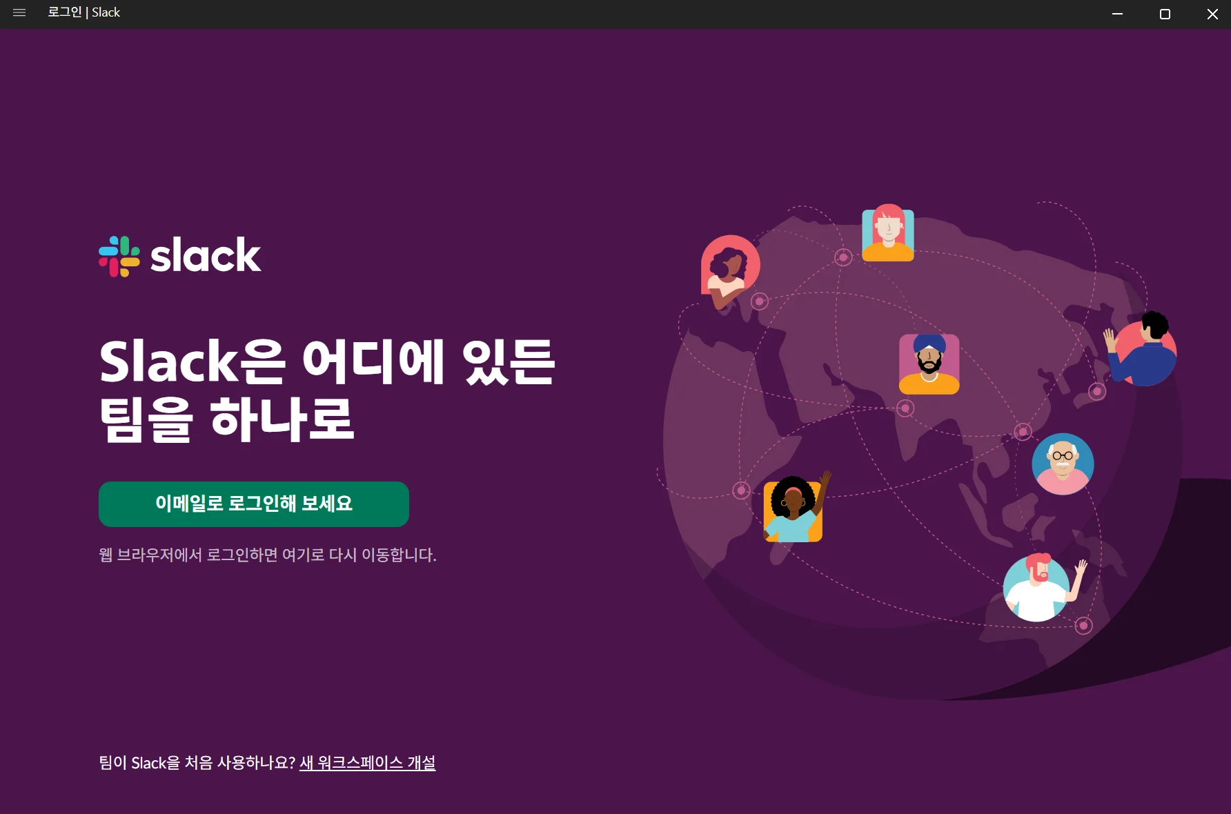 슬랙 설치가 완료되었다면, 로그인을 해서 워크스페이스에 접속해야 해요.