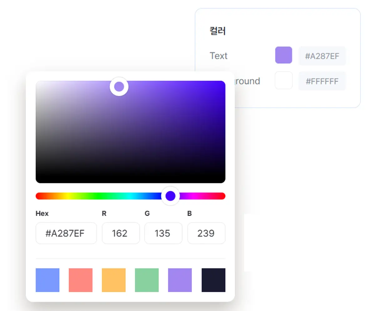 앞면은 폰트 색상,뒷면은 배경 색상이에요. 텍스트를 두줄로 작성하고 싶다면Enter로 구분하면 돼요.