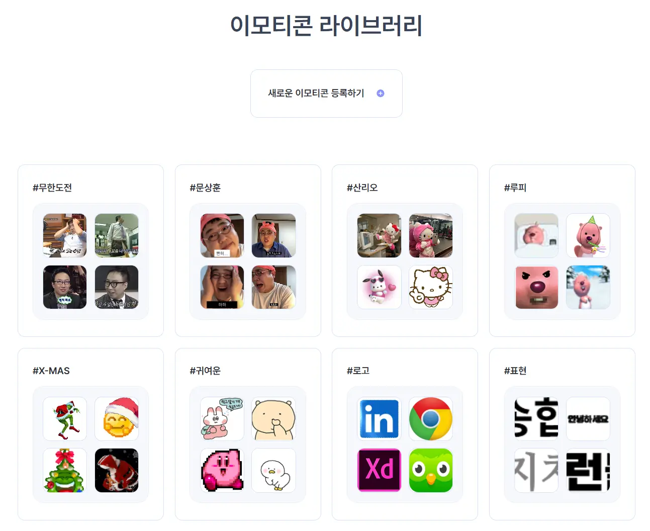 이미 만들어진 이모지를 사용하는 방식이라, 특정 문구나 상황에 맞게 새로 만들어 쓰기는 어려워요.