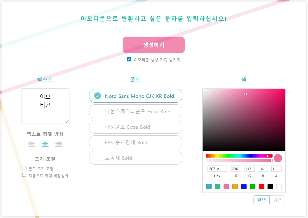 Emoji Generator는 텍스트를 입력하거나 다양한 요소를 조합해 새로운 이모지를 만드는 사이트입니다. 원하는 단어를 입력하면 이를 기반으로 한 이모지를 자동 생성해줘요.