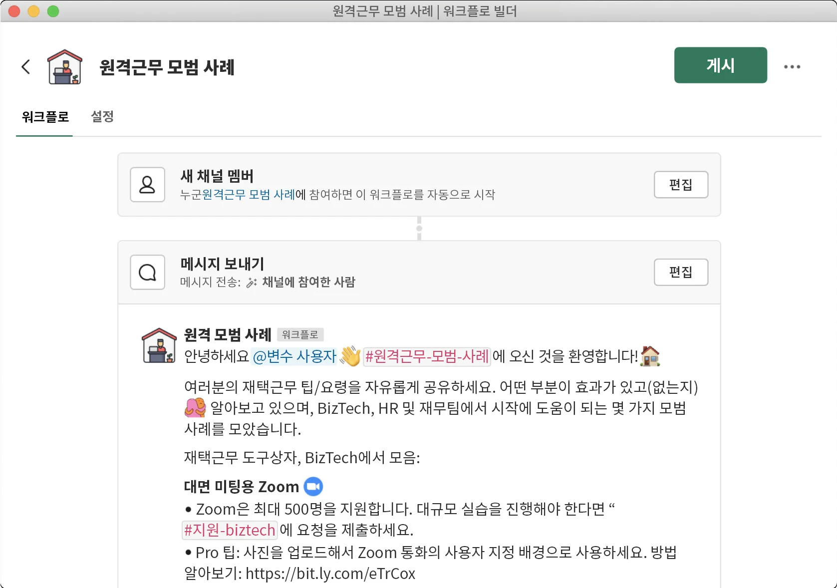 슬랙 워크플로(Slack Workflow)