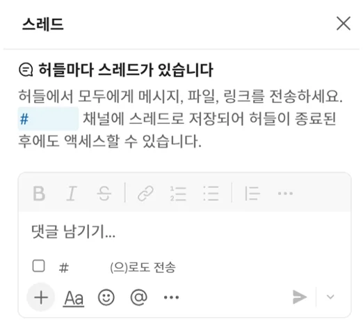 실시간 슬랙 허들 스레드