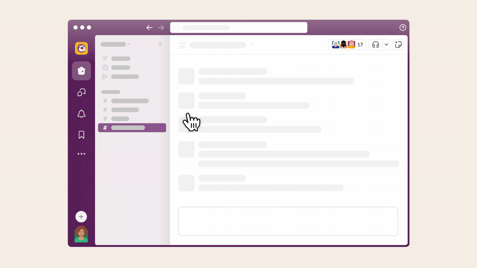 허들은 슬랙 안에서 바로 시작할 수 있는 음성/화상 통화 기능으로, 별도 회의 링크나 프로그램 없이도 팀원들과 실시간으로 대화할 수 있어요. 슬랙 사이드바 상단의 허들 메뉴 이외에도 채널이나, 다이렉트 메시지(DM)에서도 클릭 한 번으로 간편하게 허들을 시작할 수 있어요.