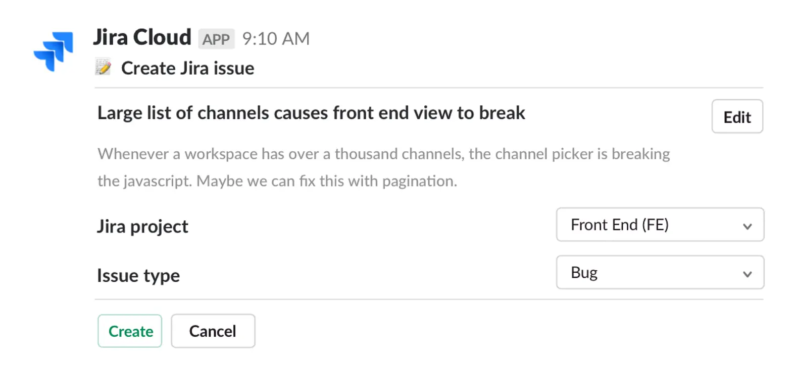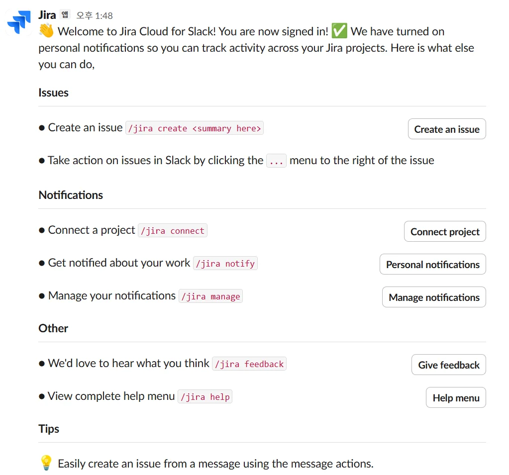 슬랙에서 지라 이슈(Issue) 생성하기