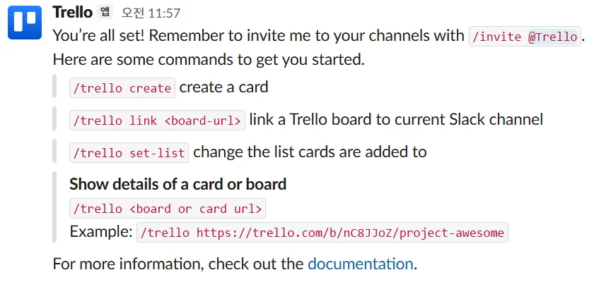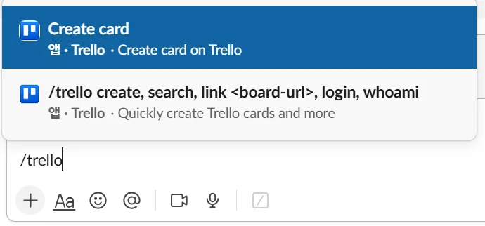 슬랙에서 트렐로 명령어 활용하기