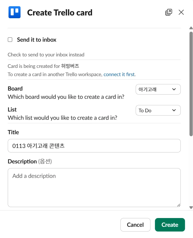 슬랙에서 트렐로 카드(Card) 만들기