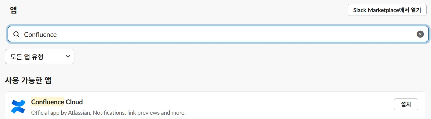 슬랙 앱 마켓플레이스에서 컨플루언스(Confluence) 설치하기