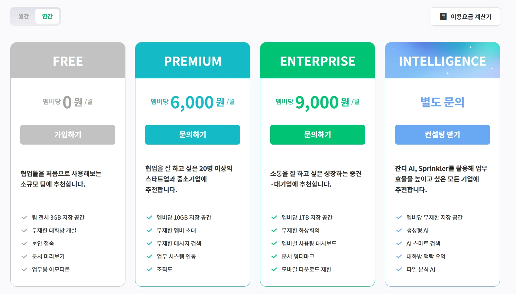 슬랙(Slack) vs 잔디(JANDI) 요금제 비교