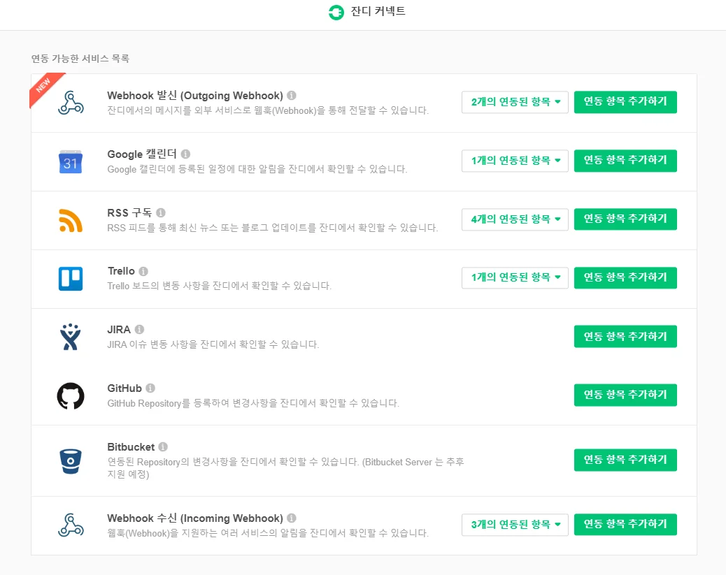 잔디는 잔디 커넥트 기능을 통해 Google Calendar, Trello, JIRA, GitHub 등 핵심 도구의 알림을 연동하여 받아볼 수 있습니다. 또한, 웹훅(Webhook)을 연동하여, 원하는 서비스 알림을 잔디로 보내는 간단한 커스텀도 가능합니다.