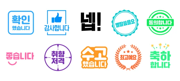 잔디는 커스텀 이모지는 지원하지 않지만, 업무에 특화된 이모티콘으로 업무 상황에 적합하게 사용할 수 있어요. 또한, 텍스트형 스탬프 이모티콘을 활용해 공지나 대화의 읽음 표시 역할도 할 수 있습니다.