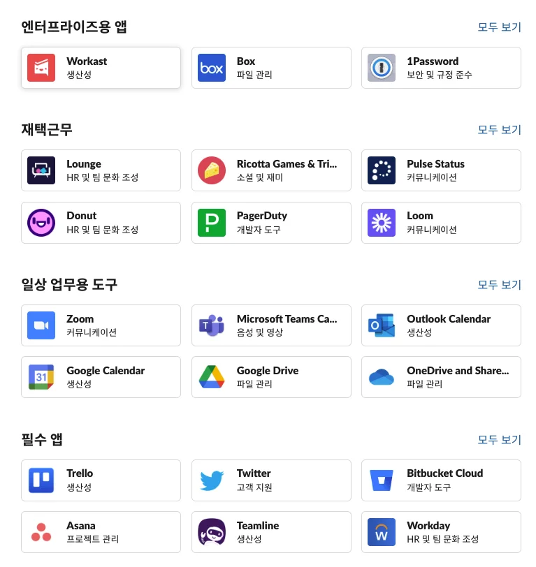 특히, 슬랙은 외부 앱 연동성과 자동화의 깊이에서 강점을 보입니다. 2,000개가 넘는 외부 앱과 연결되어 있어 팀이 사용하는 모든 SaaS를 슬랙 안으로 통합할 수 있습니다. 워크플로 빌더를 활용하면 별도의 개발 작업 없이도 반복 업무를 자동화할 수 있어 팀의 운영 부담을 크게 줄일 수 있습니다.