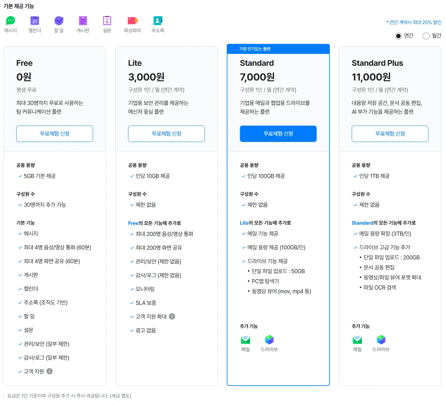 슬랙(Slack) vs 네이버웍스(NAVER WORKS) 요금제 비교