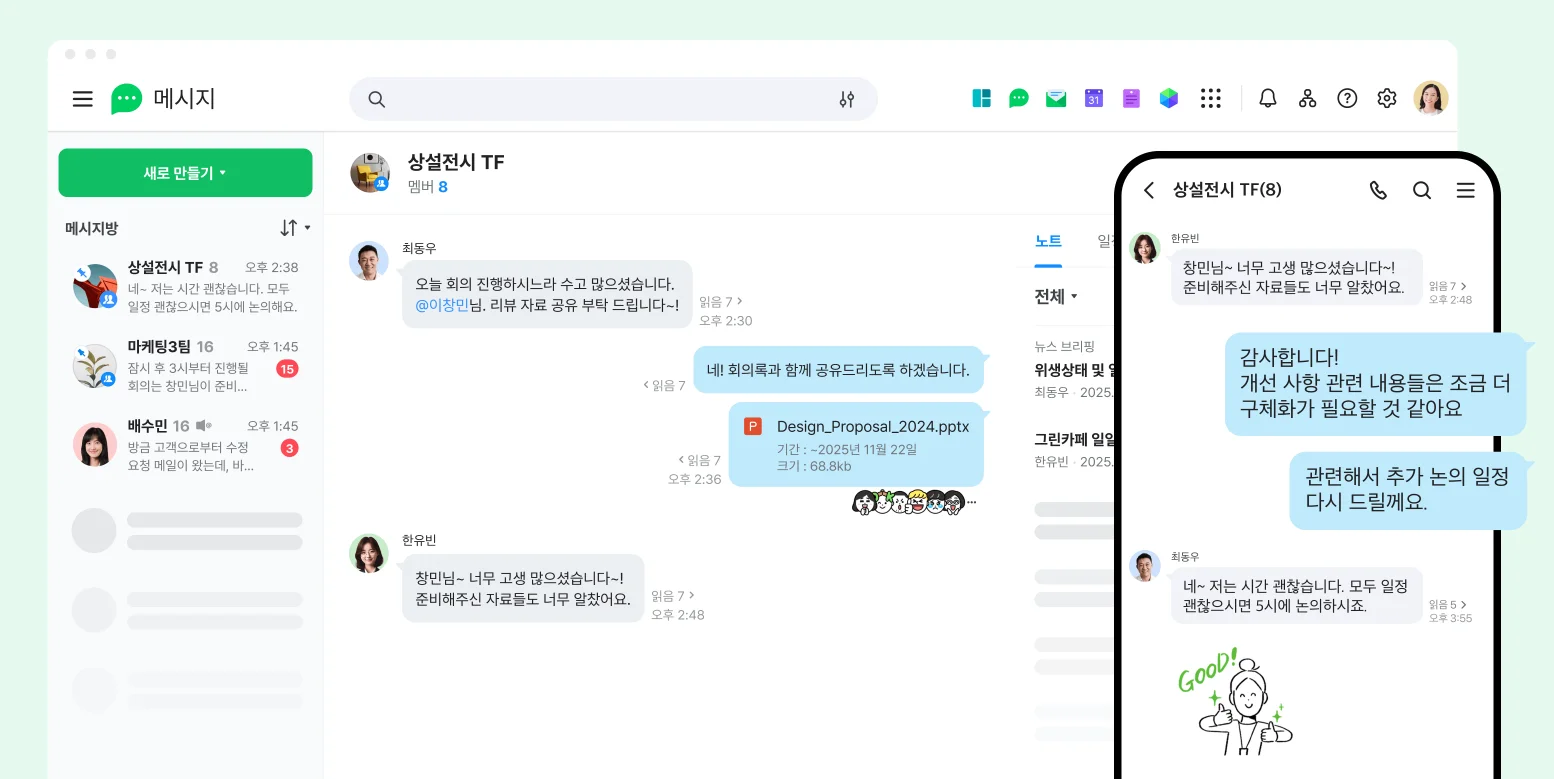 네이버웍스(NAVER WORKS): 메시지방 중심 대화