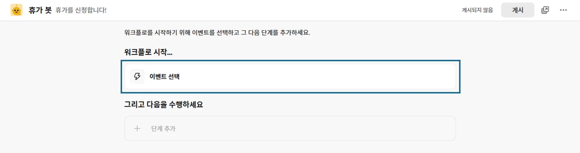 이벤트 선택버튼을 누르면 언제 워크플로가 시작될지 설정할 수 있어요.