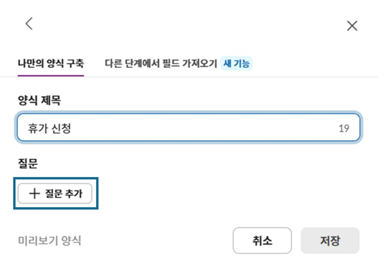 업무 요청 봇은 양식을 활용하여 워크플로를 만들기 때문에,