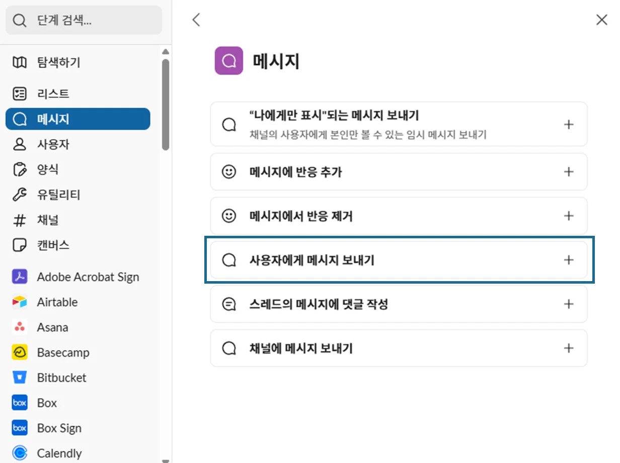 2-3. 슬랙 워크플로 메시지 단계 설정하기